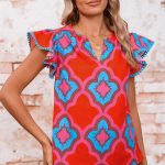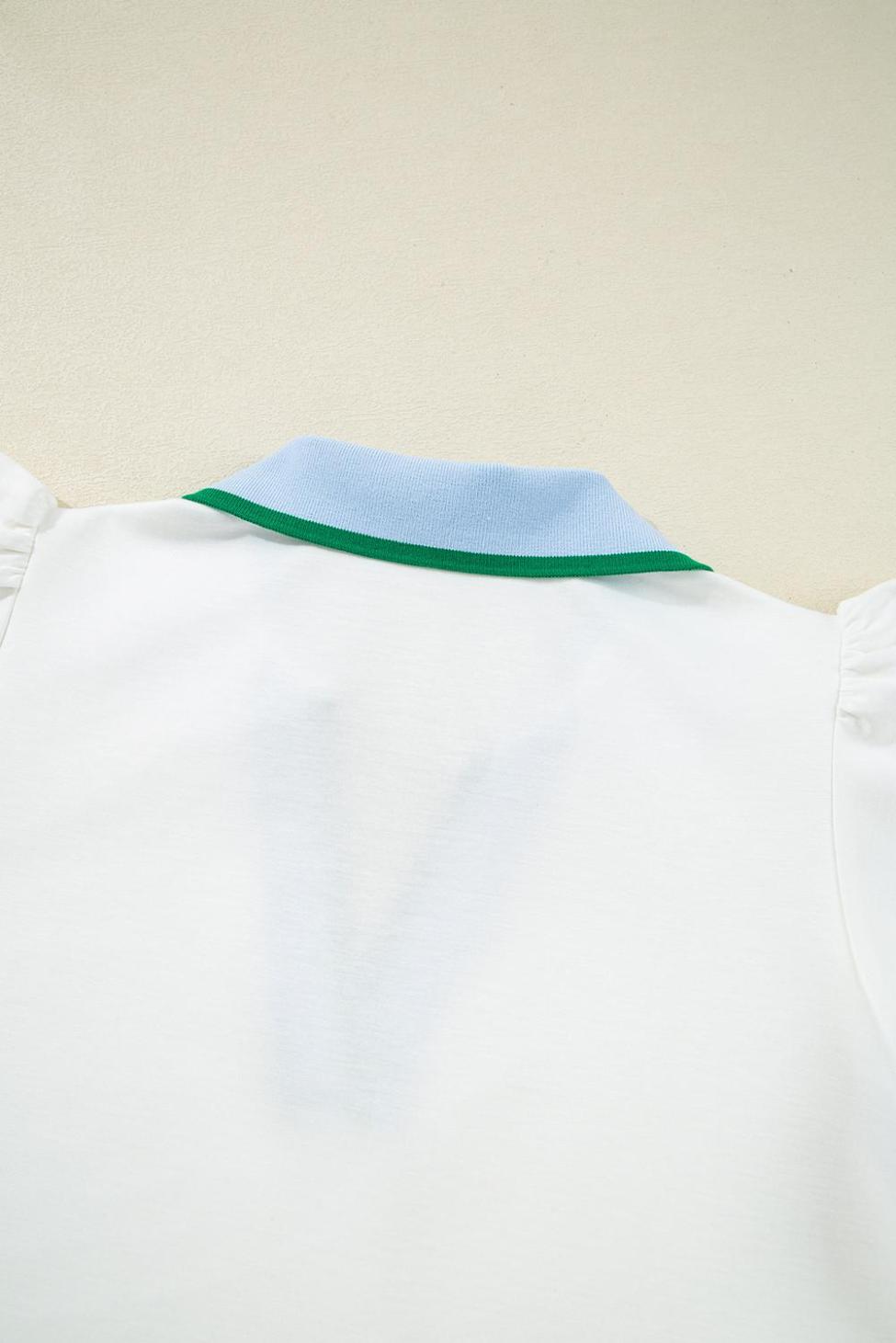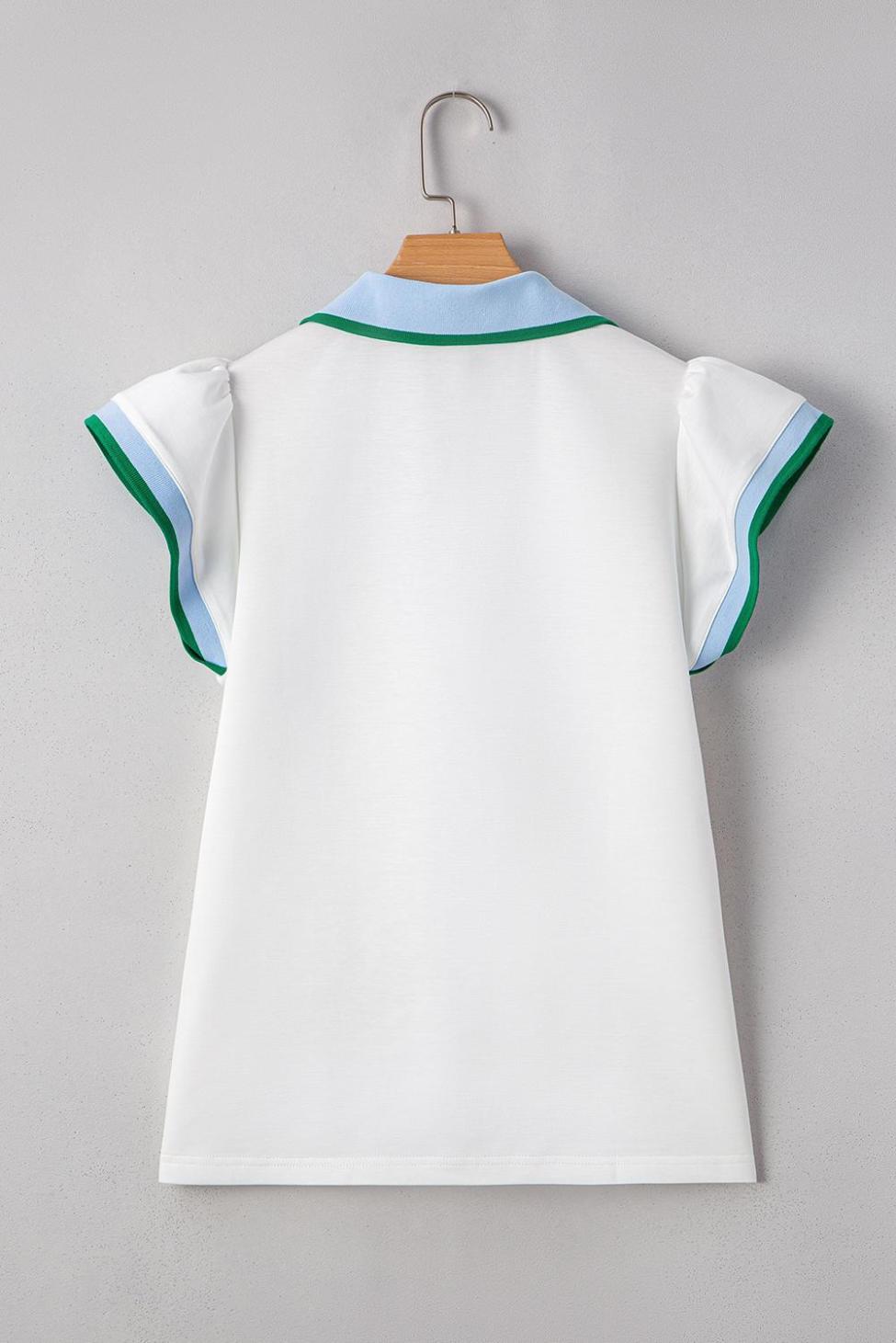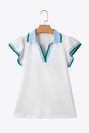 Blouses | White Pop Of Color Collared V Neck Ruffle Sleeve Blouse – Women