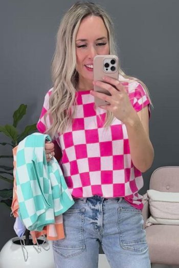 Knit Tops | Rose Checkered Pattern Cap Sleeve Knitted Top – Women