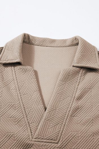 T Shirts | Pale Khaki Textured V Neck Collared Split Hem T Shirt – Women