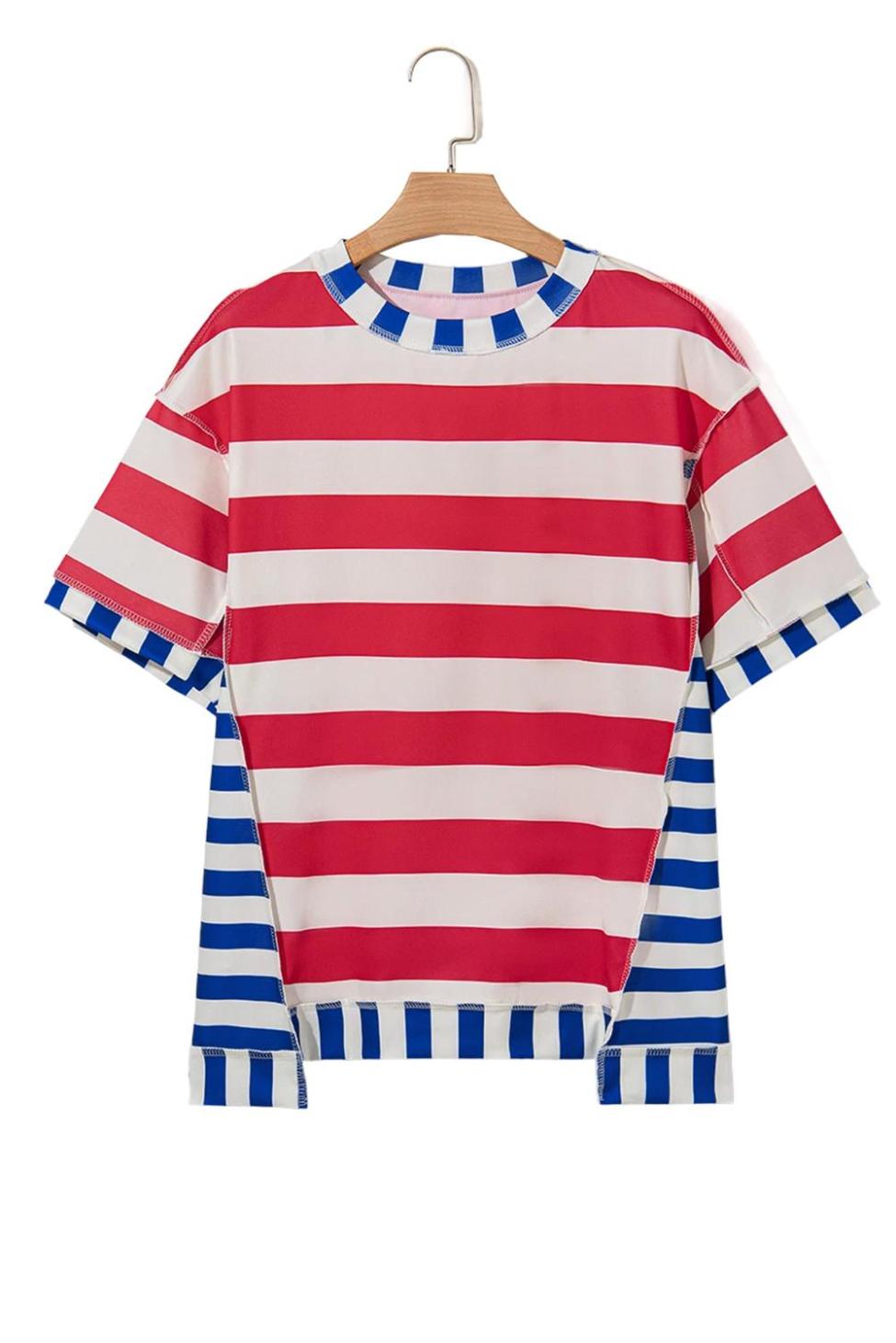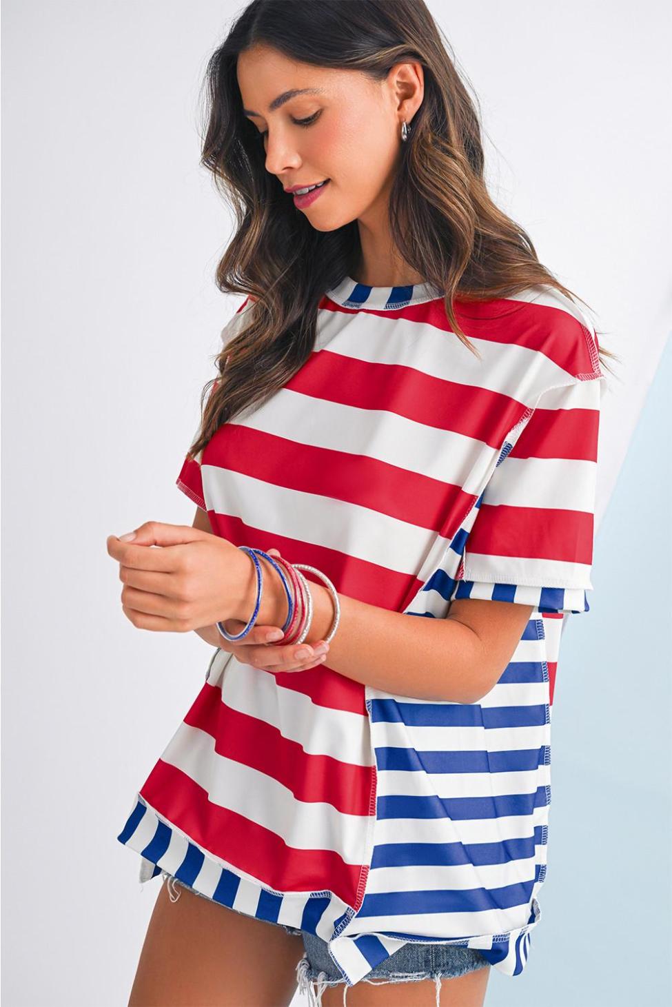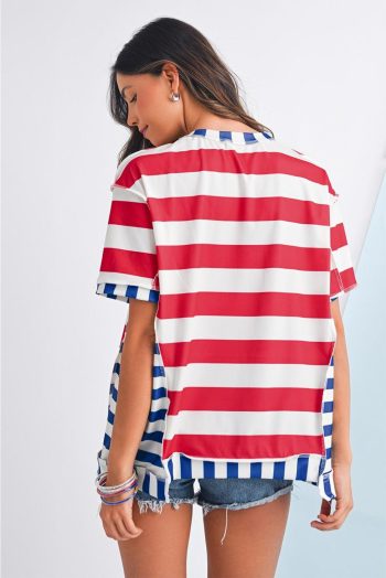 - Stand Out In Style With The Stripe Loose Casual Color Block T-Shirt, Perfect For Daily Wear.